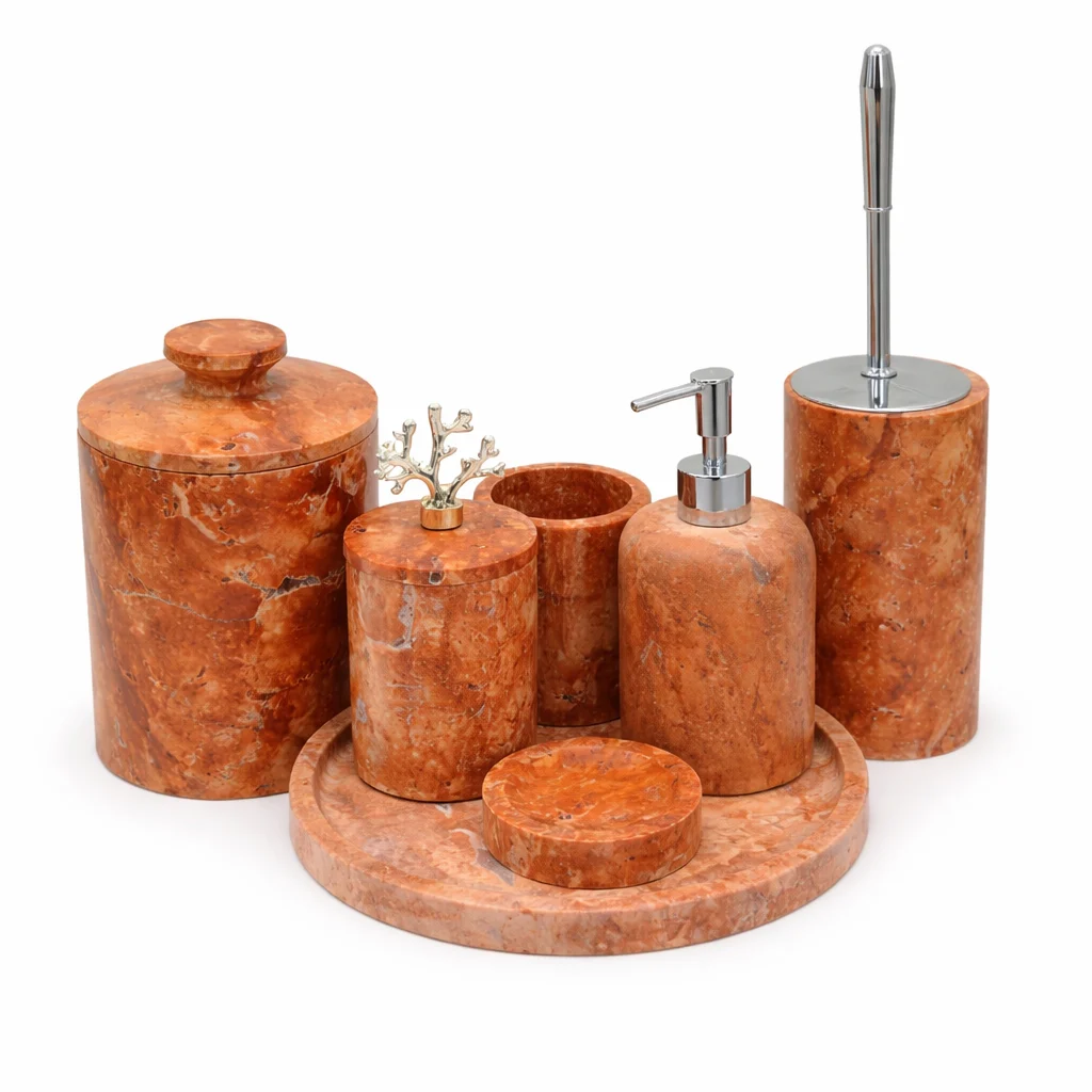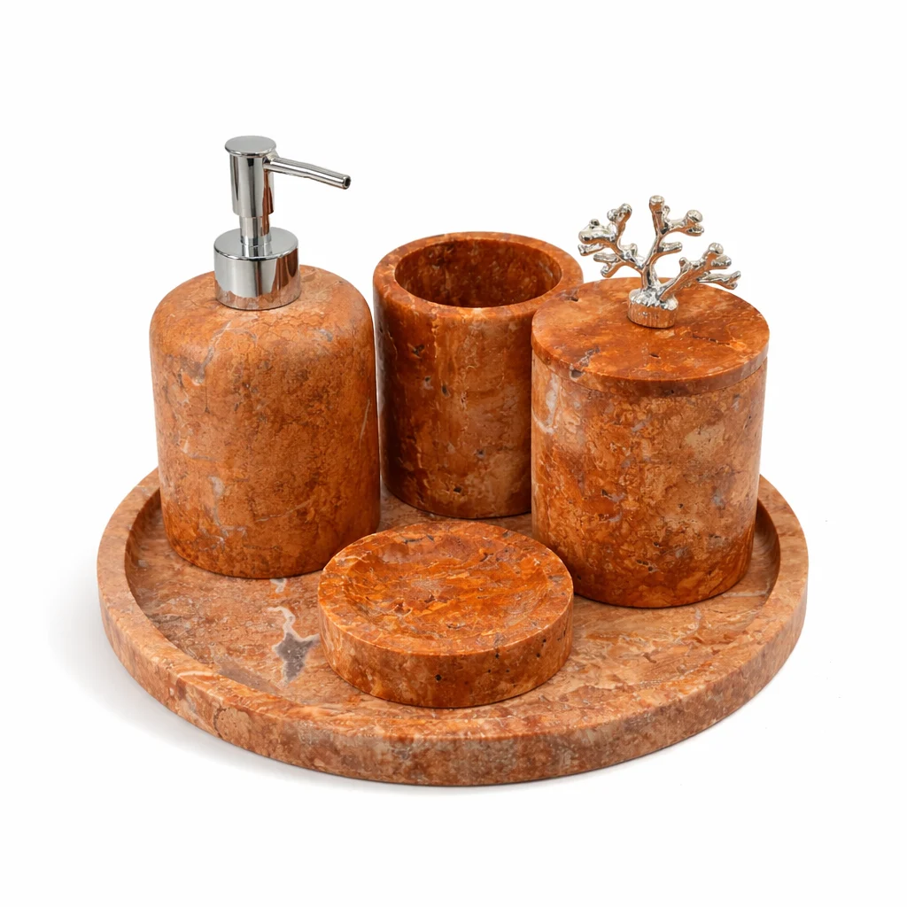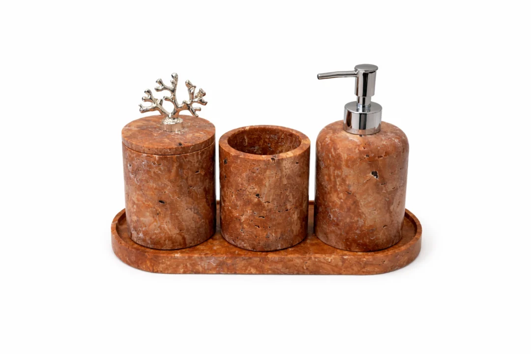 Rood marmer laat zich goed combineren met andere marmeren huisartikelen, zoals marmeren dienbladen en marmeren schalen. In combinatie met lichtere tinten ontstaat een gebalanceerd geheel waarin rood marmer een duidelijke maar beheerste rol speelt.