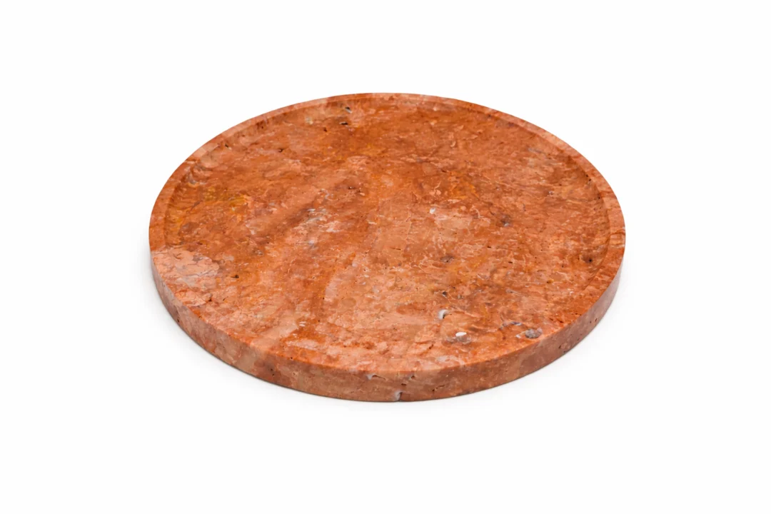 Rood marmer maakt deel uit van de collectie marmeren woonproducten en komt terug in verschillende productcategorieën waar materiaal en vorm centraal staan.