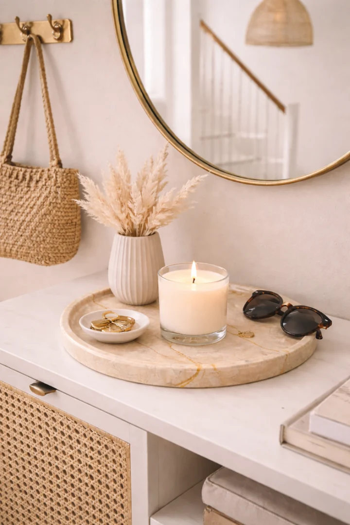 Dit marmeren dienblad is veelzijdig in gebruik en ideaal voor het presenteren van accessoires, kaarsen, parfumflessen of andere decoratieve items. Ook op een eettafel, salontafel, dressoir of keukenblad vormt het een stijlvol accent. Dankzij het stevige en duurzame karakter van marmer is het dienblad geschikt voor dagelijks gebruik.