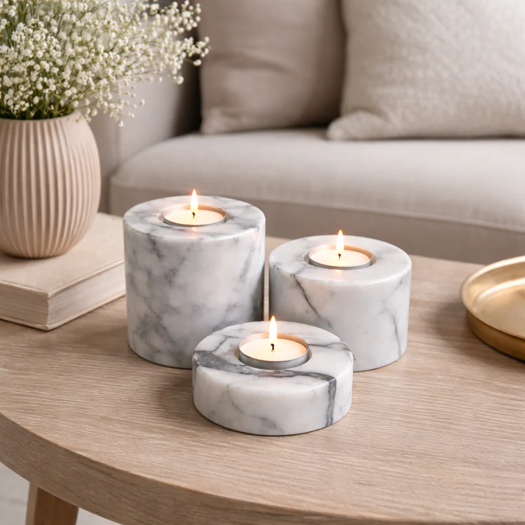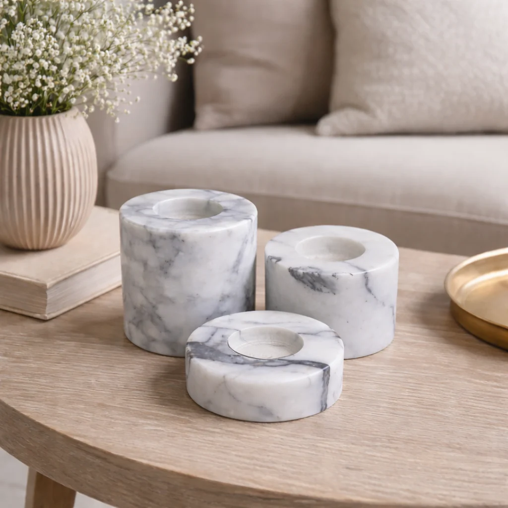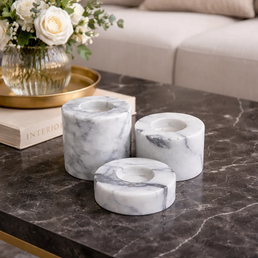 Deze marmeren kaarshouder is een exclusief woonaccessoire dat vakmanschap en tijdloze luxe samenbrengt. Vervaardigd uit massief wit marmer en met de hand afgewerkt, heeft elke houder een unieke natuurlijke adering die zorgt voor een karaktervolle en hoogwaardige uitstraling. De strakke cilindervorm en het glad gepolijste oppervlak maken dit product perfect voor moderne, minimalistische en luxe interieurs.