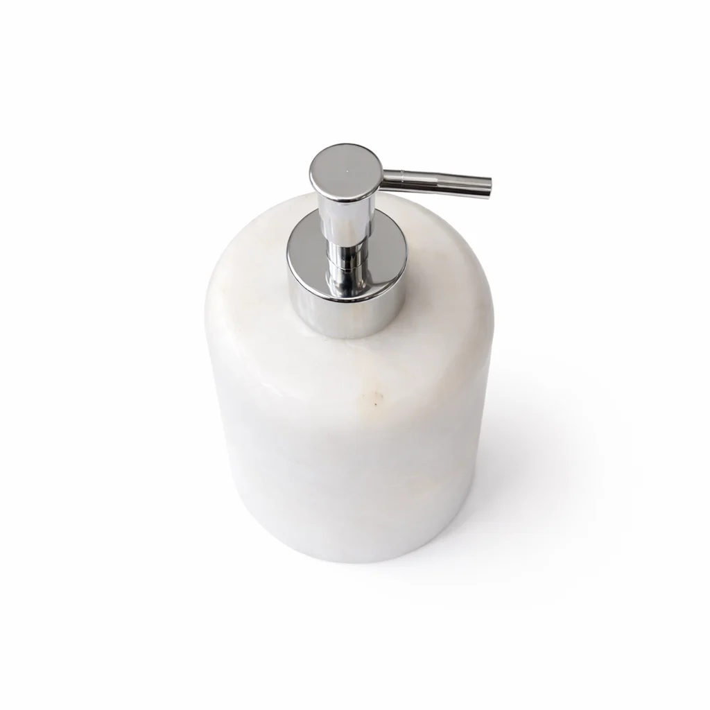 Deze witte marmeren zeepdispenser is een stijlvolle toevoeging aan iedere badkamer, toiletruimte of keuken. Gemaakt van natuurlijk marmer straalt het product luxe en rust uit, terwijl de subtiele aders en kleurnuances elk exemplaar uniek maken. De gladde, cilindervormige afwerking zorgt voor een tijdloos design dat moeiteloos past binnen zowel moderne als klassieke interieurs.