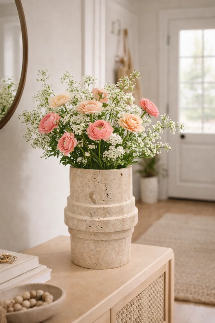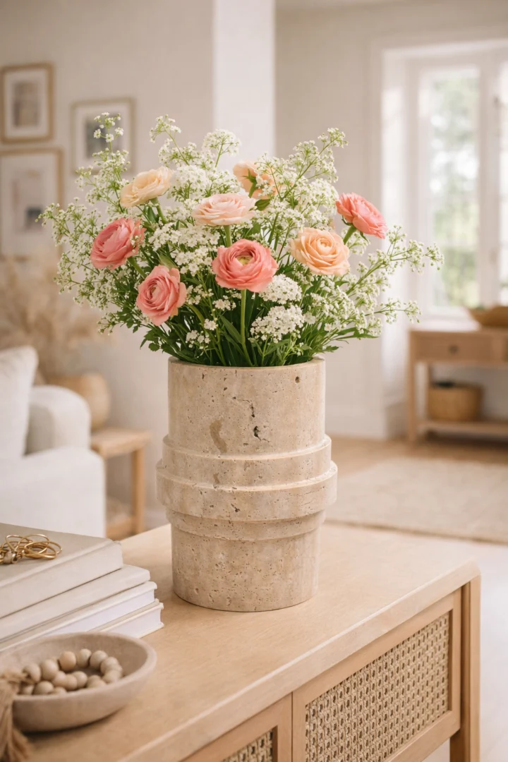 Deze travertin vaas is niet alleen een stijlvol woonaccessoire, maar ook een duurzaam designobject dat jarenlang meegaat. Een exclusief item voor liefhebbers van natuurlijke materialen, luxe afwerking en tijdloos interieurdesign.